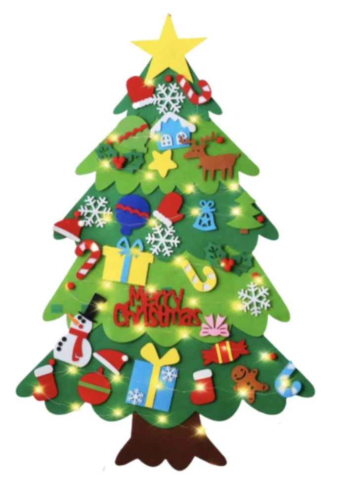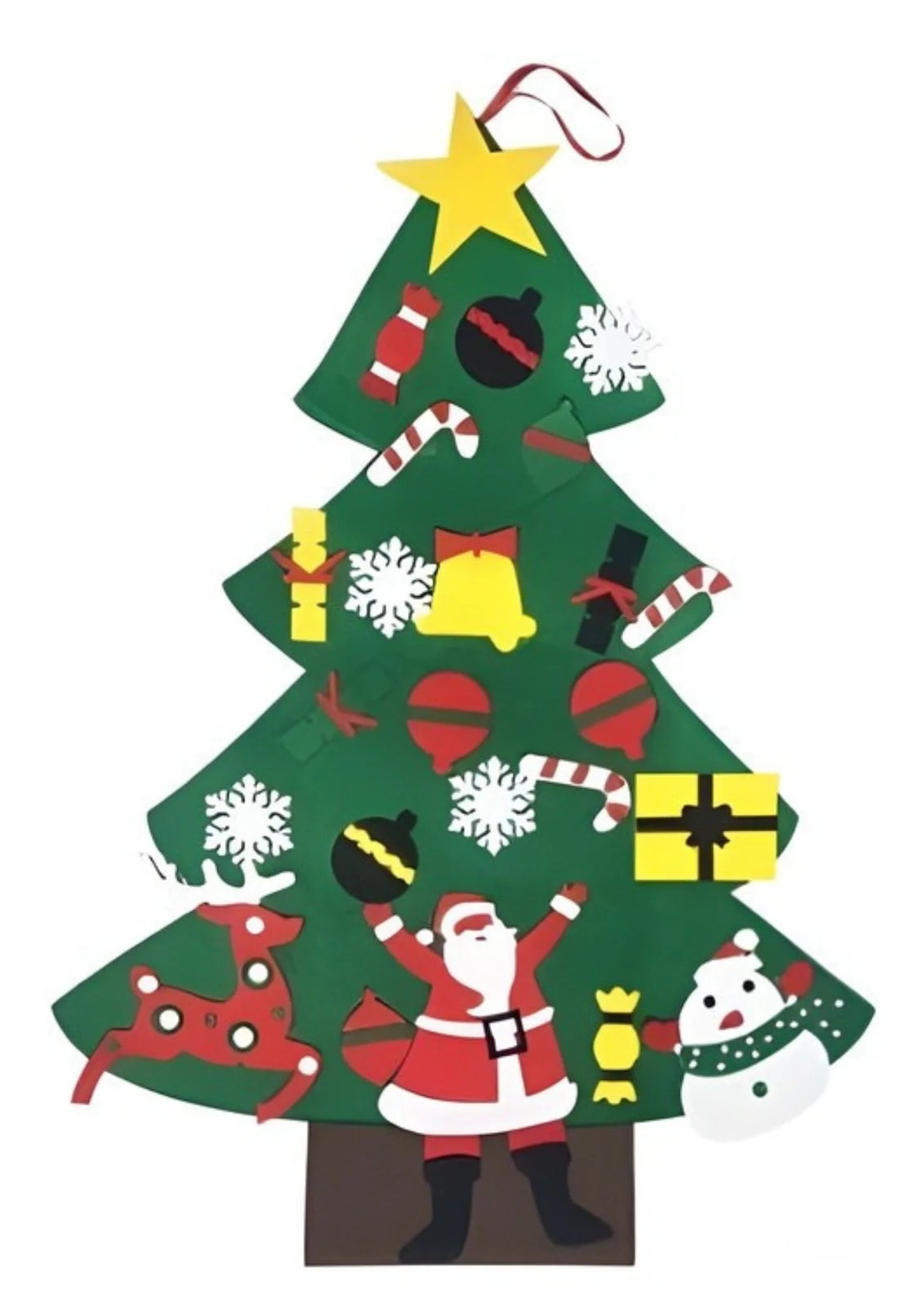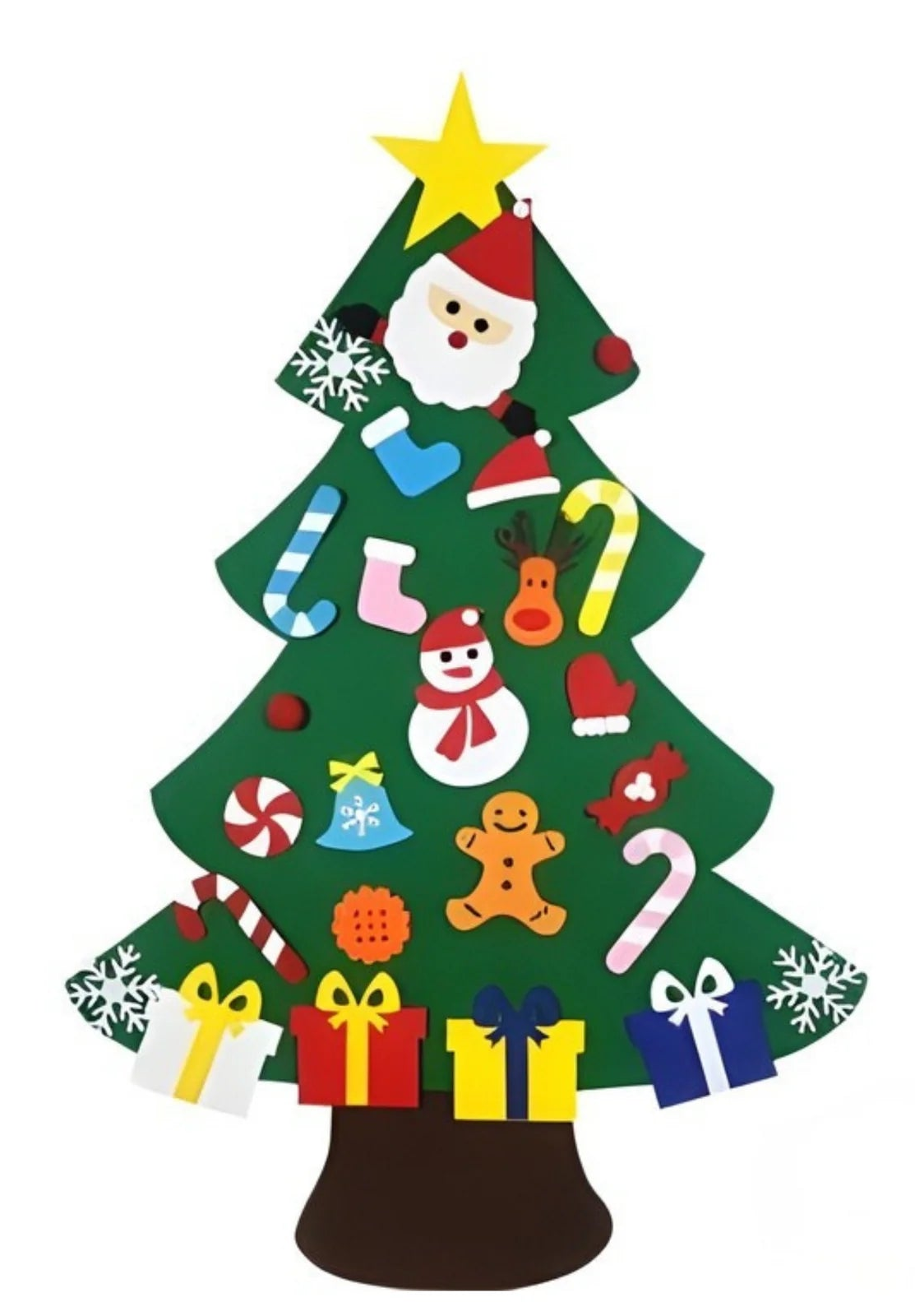 Väck julens magi till liv med denna gör-det-själv-julgran av filt! Barnen kan dekorera sin egen gran genom att arrangera färgglada ornament precis som de vill. Det är ett roligt, interaktivt sätt att göra familjens juletraditioner ännu mer speciella.