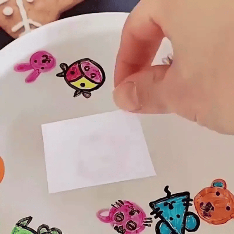 💧 Börja med att doppa pennans spets i ett glas vatten och låt den suga upp det färgförändrande bläcket.